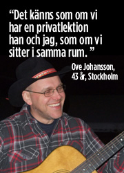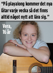 Den främsta fördelen med playalong.se är att man hela tiden är uppdaterad med nya lektioner. Jag har en egen profil med foton och filmklipp. Jag har provat på videochatt de gånger ni haft livelektioner. Jag går ofta in på Communitysidan, det är kul att se vem som nyligen loggat in."