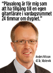 "Det bästa med Playalong.se är tillgängligheten och pedagogiken. Jag tycker att det är jättebra att man kan öva när man vill och hur ofta man vill. Lektionerna är otroligt pedagogiska och tydligt upplagda vilket gör att även jag som nybörjare kan tillgodogöra mig innehållet. Detta gör att det är helt enkelt mycket roligare att öva till Playalonglektionerna än att sitta med ett nothäfte framför sig.